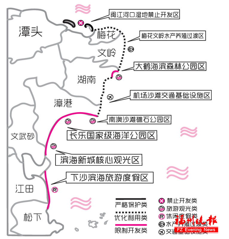 長(zhǎng)樂國家級(jí)海洋公園:位于漳港仙岐村附近。通過清理占灘構(gòu)筑物、實(shí)施海灘養(yǎng)護(hù),為長(zhǎng)樂國家級(jí)海洋公園建設(shè)奠定基礎(chǔ),結(jié)合海蚌自然保護(hù)區(qū)、顯應(yīng)宮海洋文化,將該區(qū)域打造成具有長(zhǎng)樂特色的海岸自然風(fēng)光優(yōu)美、旅游產(chǎn)品豐富多樣、科普旅游融教于樂的濱海旅游勝地。計(jì)劃建設(shè)年限是2019年至2025年。