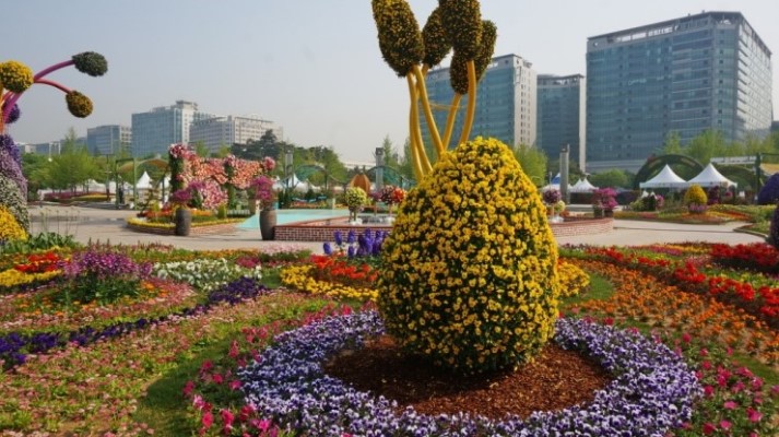 水和花的庭院:韓國高陽市一山湖水公園