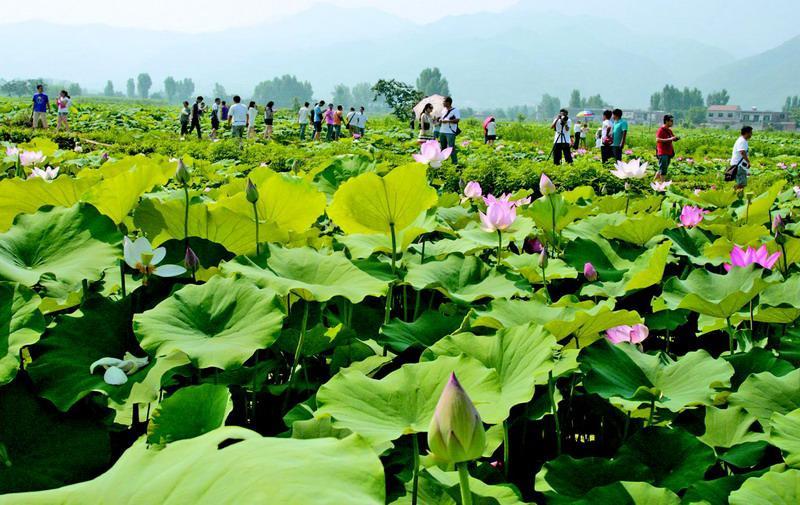 延安南泥灣濕地公園百畝荷花盛開(圖)