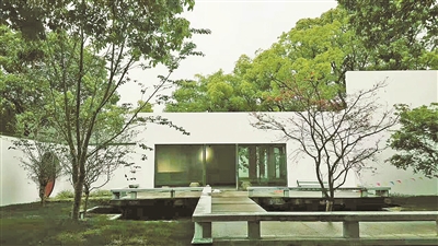 眼前基本建成的園林博物館,包含了亭、橋、廊、榭、山水造景等多樣內容,可謂“麻雀雖小五臟俱全”。特別是項目保留的大樹,在建設中得到空間上的釋放與調整,與室內外景觀相互滲透,共同營造出一幅如詩如畫的恬靜園林美景。
