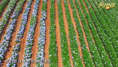 在云南陽宗海畔近三千畝的南國山花花卉種植基地,夏天最漂亮的是藍色、紫色和白色——這是繡球花的顏色。