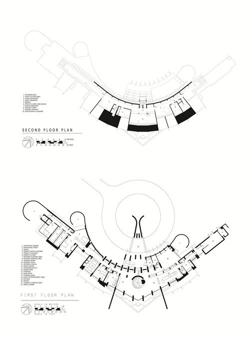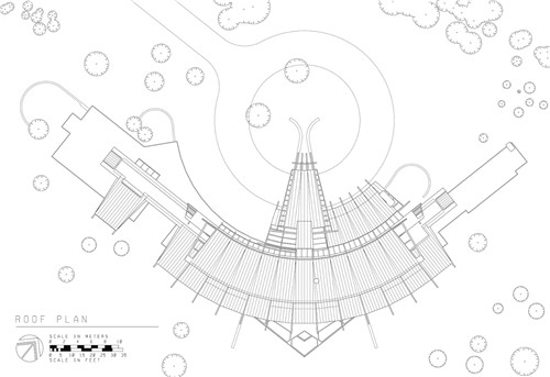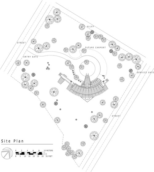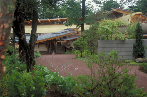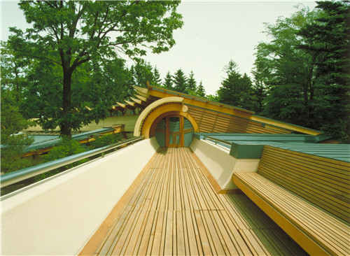 此外,還需要將日本傳統的需求融入到設計之中。房子的布置及其曲線形狀允許它在基地現有的樹木之間進行布局。