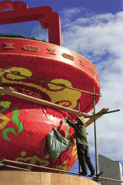 記者昨日在布達(dá)拉宮廣場看到,園林工人們正在布置一個非常精美的花雕設(shè)計——“盛世花籃”。“花籃的地臺由藏式吉祥八寶、藏式祥紋組成。吉祥八寶圖下面由歷屆雪頓節(jié)代表性照片和拉薩城市建設(shè)取得的成果組成照片群像,地臺下方是藏式5色的階梯,并在上面擺放仿真綠植和黑頸鶴、蝴蝶、白唇鹿等。”拉薩市園林局相關(guān)負(fù)責(zé)人介紹,“旨在通過這些元素展現(xiàn)生態(tài)、環(huán)保的理念。”