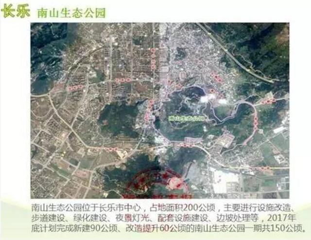 位于市中心,占地面積200公頃,計劃先完成90公頃新建公園,改造提升60公頃的南山生態公園,總計150公頃,其中新增步道長度約4.5公里。