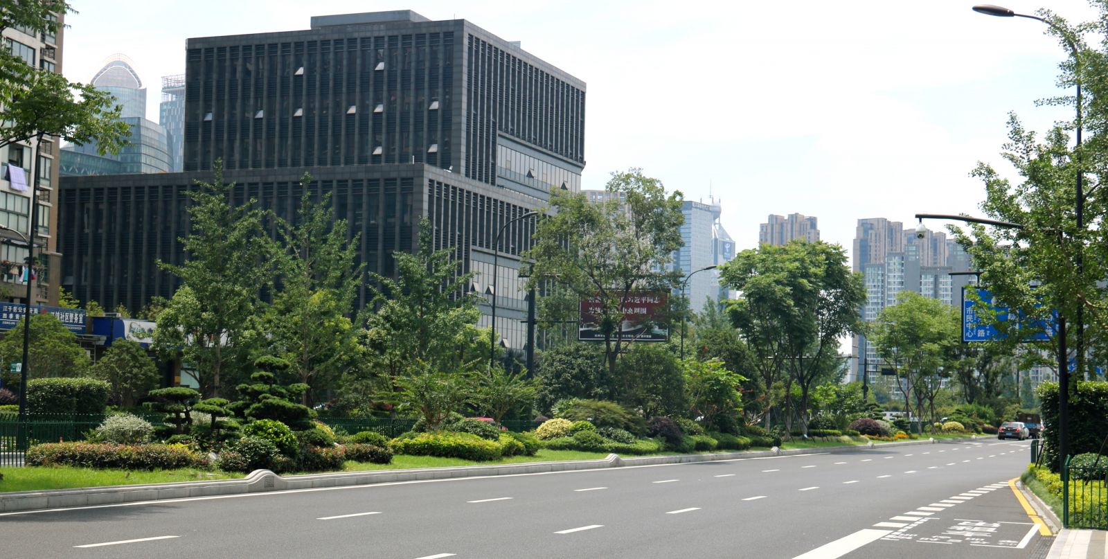 工程南起新業路,北至曇花庵路,綠化面積約4.2萬平方米,全長約1750米。是集綠化、美化、文化等為一體的景觀大道,四季特色分明,春有日本早櫻、垂絲海棠等花滿枝頭;秋有銀杏、紅楓色彩明艷,更有桂花一路飄香;夏、冬時節風景又有不同。豐富的植物配置、色彩鮮艷的草花、文化氣息濃郁的小品……使得這條道路開闊大氣,充滿生機。