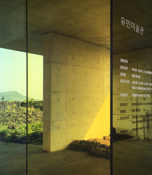 鳳凰島上的火山漢拿山是自然風貌的一大亮點,安藤忠雄所設計的展館Genius Loci中的視覺體驗便是圍繞火山景觀而展開。奪目的自然景觀與安藤忠雄的清水混凝土建筑之間產生了對話,這種優(yōu)雅精致卻帶有一絲陰郁色彩的環(huán)境用以永久展示精美的新藝術運動玻璃制品。建筑師希望在美麗的景觀中創(chuàng)造一個安寧的冥想空間。