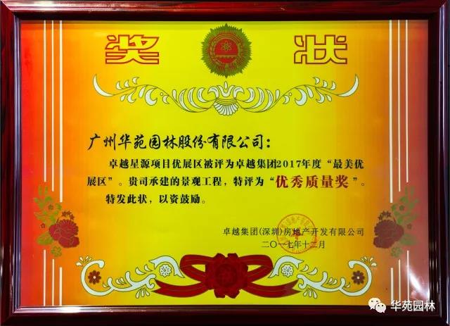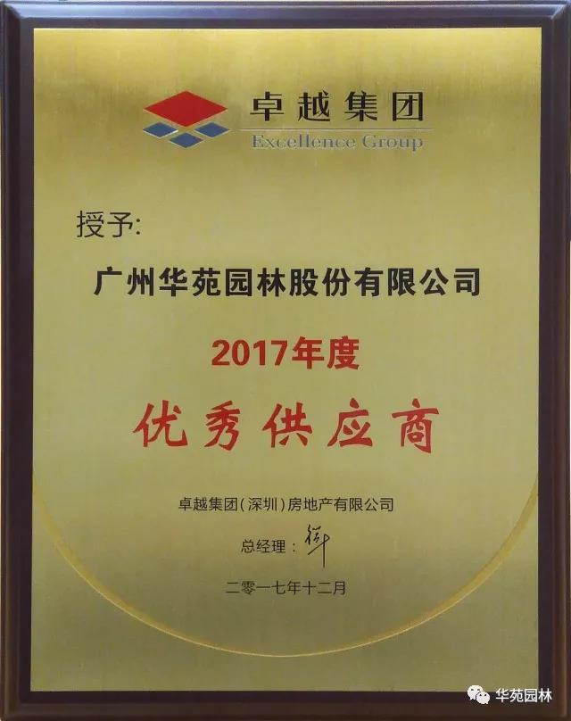 近日,華苑園林承建的卓越星源項目榮獲“卓越集團”授予的“優秀質量獎”。自合作以來,華苑園林憑借穩定的工程質量及良好的配合度,贏得甲方的一致肯定,榮獲“優秀供應商”榮譽稱號。