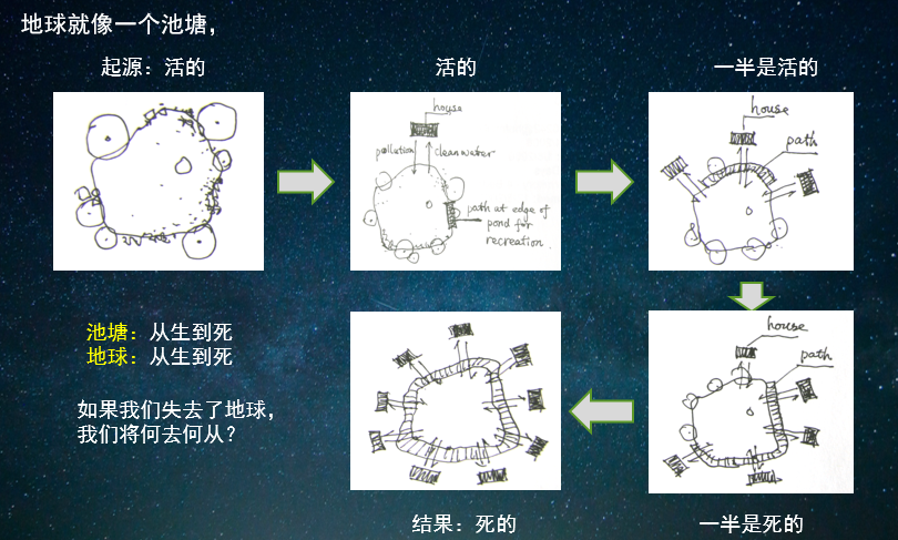 在這里,我們可以把地球比作一個從“生”至“死”的小池塘。最初這個池塘原來是自然的,池塘里及周邊動植物,樂在其中,池塘的水質也非常好。時間長了,人們陸續(xù)在池塘邊蓋房子,但是一開始問題不大,雖然人們從池塘里取用清水,把污水排入池塘,但是池塘自凈能力仍然能夠維持生態(tài)系統(tǒng)平衡。之后,池塘邊的房子越來越多,最終超出了池塘的自凈能力,最終池塘的生態(tài)系統(tǒng)徹底崩潰。其實,我們現(xiàn)在的地球就如同這樣一個小池塘,我們?nèi)祟惒粩嗟奶魬?zhàn)地球的生態(tài)系統(tǒng)服務能力,真的如果有一天,地球生態(tài)系統(tǒng)崩潰了,我們能像《流浪地球》電影中的場景一樣,帶著死寂的地球飛向宇宙的另一個星系嗎?