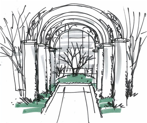 根據(jù)現(xiàn)有的建筑布局,結(jié)合景觀風(fēng)格造景手法打造“開合有度,收放自如”的特色景觀空間。