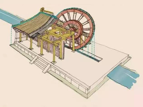 同時含涼殿也通過機械裝置來實現制冷的效果,當時的“風扇”不是利用電能,而是用水力制造動能,以水流帶動扇葉的轉動,風扇對著涼水吹風,形成冷氣。