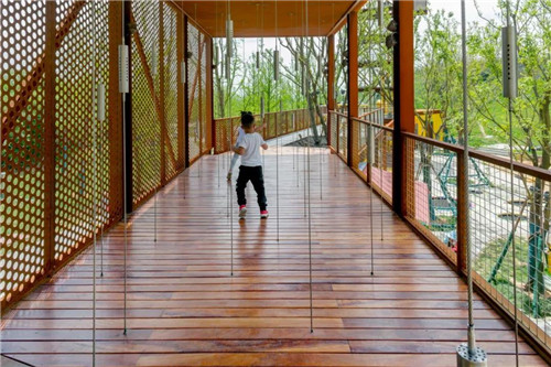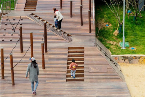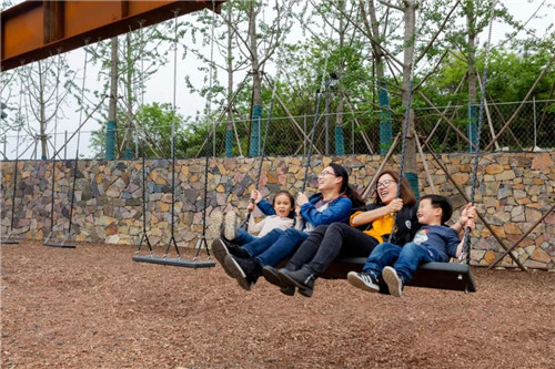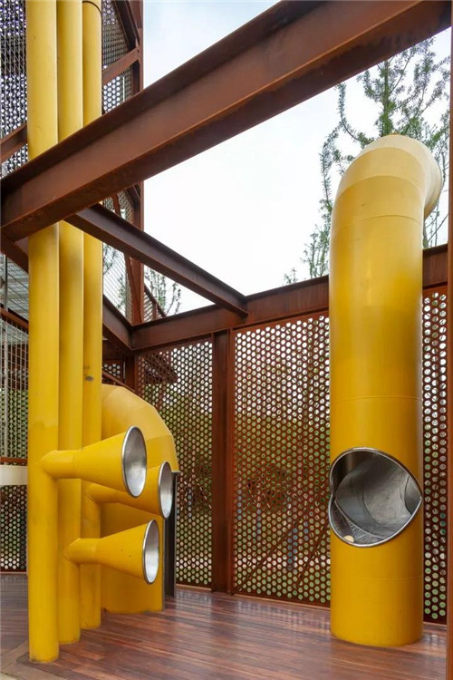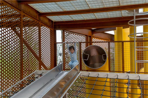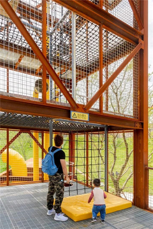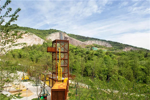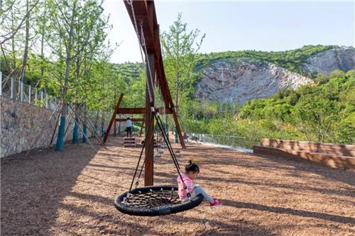 礦野拾趣樂園原為采石場堆放廢料的地方,原有植被和水文已被完全破壞。根據現場條件,在恢復水文生態加固山坡基礎上,我們將攀爬、滑梯、秋千滑索、蹦床等等活動設施組合在一起,形成礦坑特色的游憩場所。這是該項目目前最先完成的部分。