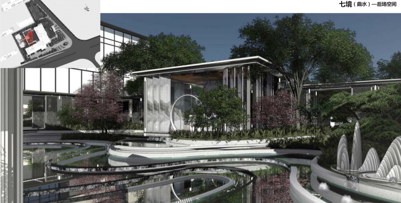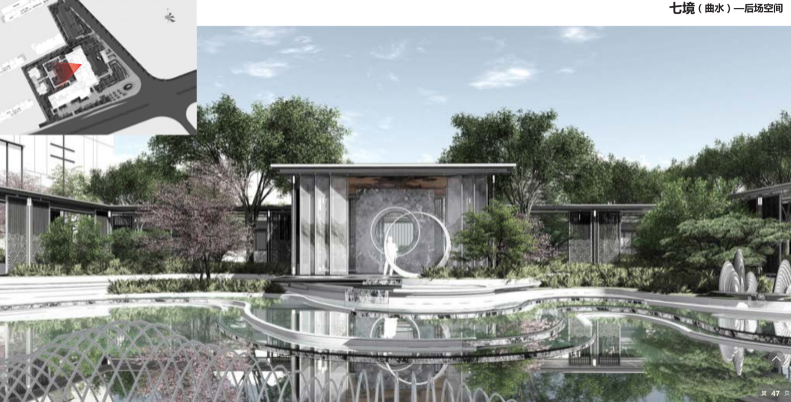 通過對項目場地的勘察與總結,以城市地理特征為線,提取山水線型運用于景觀設計元素中,水琢金刻得美玉,將玉石材質運用于景觀設計元素中,構成現代簡約的“琢玉九境”。
