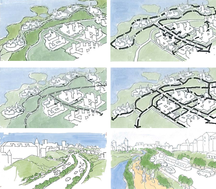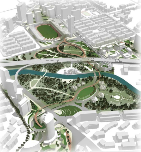 重慶李家沱位于長江邊,場地在長江邊上有很多溝渠,流到長江邊上,結合旁邊的土地變成綠廊。其中放置市民活動核心內容,如學校、健康中心、體檢中心、醫院等,和城市發展結合在一起。同時他們將綠地變成有效的方式,組織場地,并利用他水邊的岸線活動。社區里面綠地的變化和環境是很好的方式。在江邊設想了江邊的公共浴場,和江水結合在,和生活結合,創造更有效的生活環境。