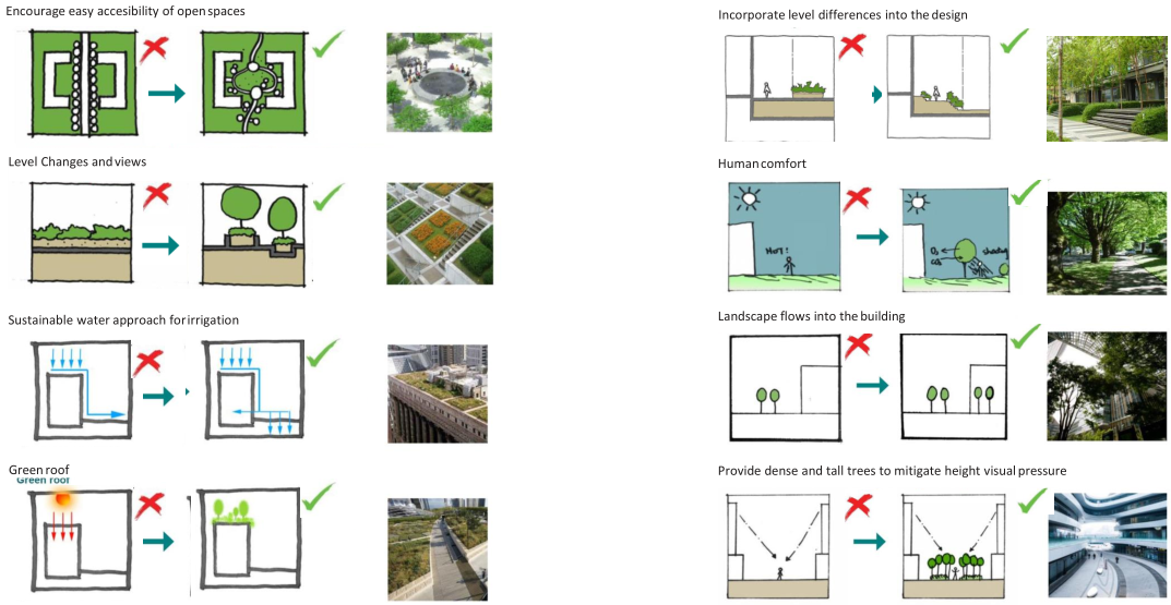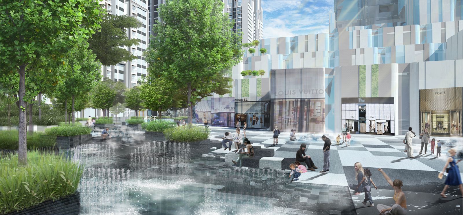設計團隊采用現代及綜合的景觀設計語言,提供獨特的視覺特色,并滿足社會及商業發展的不同需要。通過引入動態模式,進一步加強設計,新模式與高樓的設計語言相呼應,同時項目創新性地使用了材料。