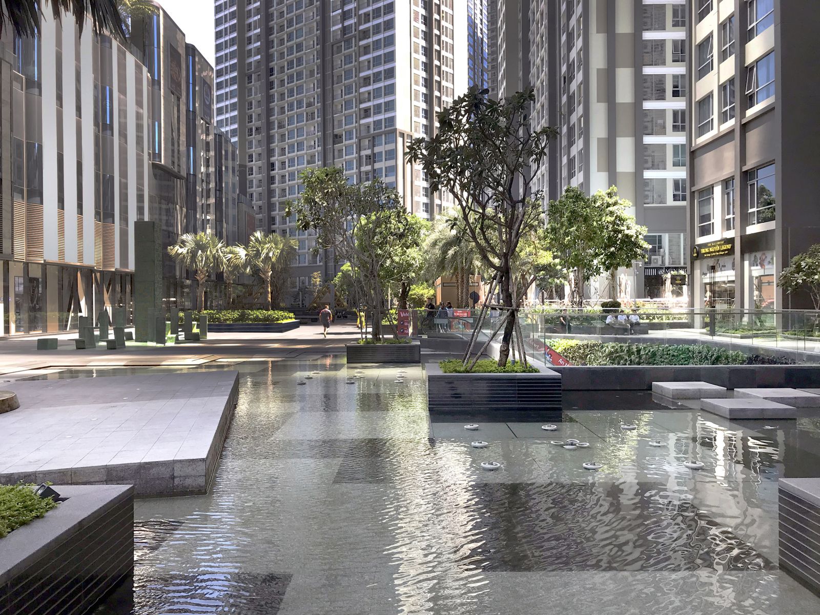 Vincom Landmark81的景觀設計意在于創造一個充滿活力、與周圍環境良好結合的公共空間,在設計的不同階段都有著不少問題要處理。項目中使用了大量的樹木種植,并且加入了水的運用,創造出了舒適、人性化的空間。這些空間對行人非常友好,可以輕松進入。