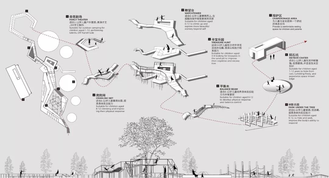 在神奇森林的設計中,設計師更加注重孩子與自然的互動,創造更具童趣的森林冒險體驗。