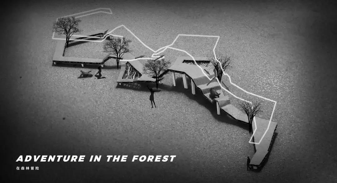 設計旨在打造自然生態特色的功能性森林生活劇場,以共同體的角度出發,感知生命、喚起情感、重塑精神,應用植物生命斑塊構建多樣的生命體,為客戶提供別具一格的景觀感受,打造一個風、森林與人和諧相處的“風森劇場”。