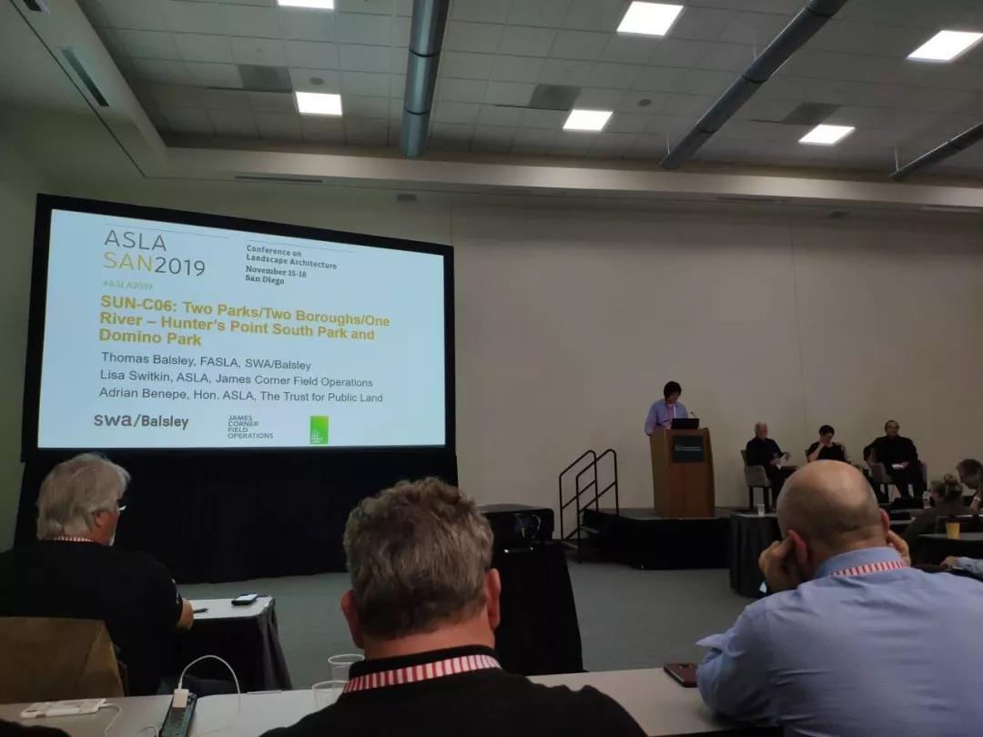 在教育論壇(Education Sessions)版塊,來自LEED綠色協(xié)會(LEED Green Associate)和埃斯特拉土地規(guī)劃公司(Estrada Land Planning)的設(shè)計師們針對在圣地亞哥當?shù)剡M行的實踐,發(fā)表了題為歷史和當代利用:圣地亞哥巴爾博亞公園面臨的挑戰(zhàn)(Historic Preservation and Contemporary Use: Challenges in Balboa Park San Diego)的主題演講,演講嘉賓認為景觀設(shè)計師時常處于廣泛的利益競爭之中,在為期數(shù)年的針對圣地亞哥巴爾博亞公園這一國家級地標式街區(qū)的設(shè)計改造里也是如此。設(shè)計師以巴爾博亞公園中的巴拿馬廣場為例,同參會者分享了如何平衡相關(guān)的利益競爭,經(jīng)過多年的爭議而最終競標。獲得ASLA專業(yè)獎的獵人角南公園和多米諾公園的SWA與James Corner Operation設(shè)計團隊,共同完成了名為兩個公園/兩個自治市鎮(zhèn)/一條河——獵人角南公園和多米諾公園(Two Parks/Two Boroughs/One River: Hunter’s Point South Park and Domino Park)的主題演講,作為21世紀濱水公園的典范,獵人角南公園和多米諾公園從工業(yè)遺跡中誕生,都面臨著公平、士紳化和彈性設(shè)計的問題,設(shè)計師們分享了他們應對這些復雜挑戰(zhàn)的策略,以及促進社區(qū)參與的成功經(jīng)驗。來自斯托斯景觀都市主義(Stoss Landscape Urbanism)的克里斯·里德(Chris Reed),來自澤德事務所(Studio Zewde)的薩拉·澤德(Sara Zewde),和來自灰度協(xié)作(Grayscale Collaborative)/哈佛研究生院(GSD)的斯蒂芬·格雷(Stephen Grey),就美國景觀實踐中黑人社區(qū)面臨的挑戰(zhàn),發(fā)表了題為身份和設(shè)計(Culture, Identity, and Design)的主題演講,設(shè)計師們從如何認識那些塑造了過去的景觀并將塑造未來景觀的復雜歷史、文化傳統(tǒng)、身份和人口的方面出發(fā),結(jié)合在費城、波士頓和圣路易斯進行的項目實踐,探討如何在設(shè)計過程中創(chuàng)造性的引入代表性和公平性,并使其成為工作的成果。