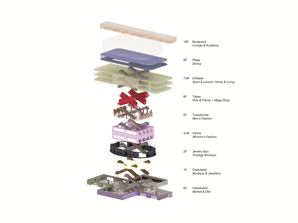 The Galleria是韓國第一家也是最大的一家高檔百貨商場,建造于20世紀70年代,從那時起便一直居于在韓國高端零售市場的前列。這家店位于首爾南部的新城光教,是Galleria的第六家分店。坐落于這個年輕的城市的發展中心,周圍環繞著高大的住宅樓,The Galleria具有如石頭般的外觀,成為了光教公共生活的中心區。