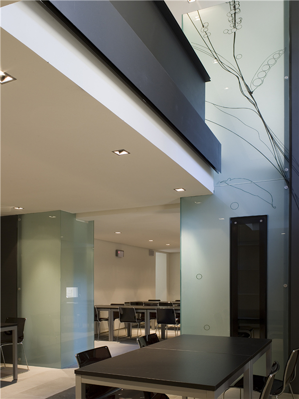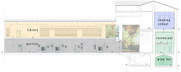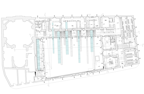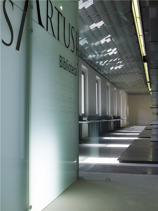 The core of the project is the historical entrance hall, a slightly declining plane designed with glass bands inviting visitors to walk through the porch, entrance of CasaArtusi. The leading idea of the design is to interpret the different special and functional units of the historical complex as a whole entity, as far as materials and visual perception of the setting are concerned. The story of Mr. Artusi becomes the unifying element that ideally and visually connects the whole building. The insertion of alternating glass and steel stripes creates a single system that strongly characterizes the sense of the interior space. The intervention features 3 materials plus 1: steel, glass, polycarbonate and stone for the flooring, constantly arranged with small variations to better capture the sense of Artusi’s story.