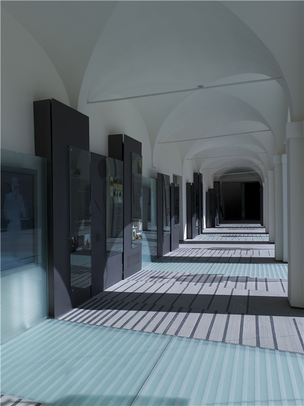 該項目的核心是具有歷史意義的入口大廳,略微傾斜的平面上的玻璃帶設計,引領游客穿過門廊及Casa Artusi的入口。設計的主導思想是考慮材料和環境的視覺感知,將歷史建筑群的不同功能單元詮釋為一個整體。Artusi先生的故事作為統一元素,在概念及視覺上串聯整個建筑。交替的玻璃和鋼條創造了一個強烈展現室內空間的系統。幾種特色材料(鋼、玻璃、聚碳酸酯和地板石)不斷產生小的變化,更好地展現了Artusi的故事感。