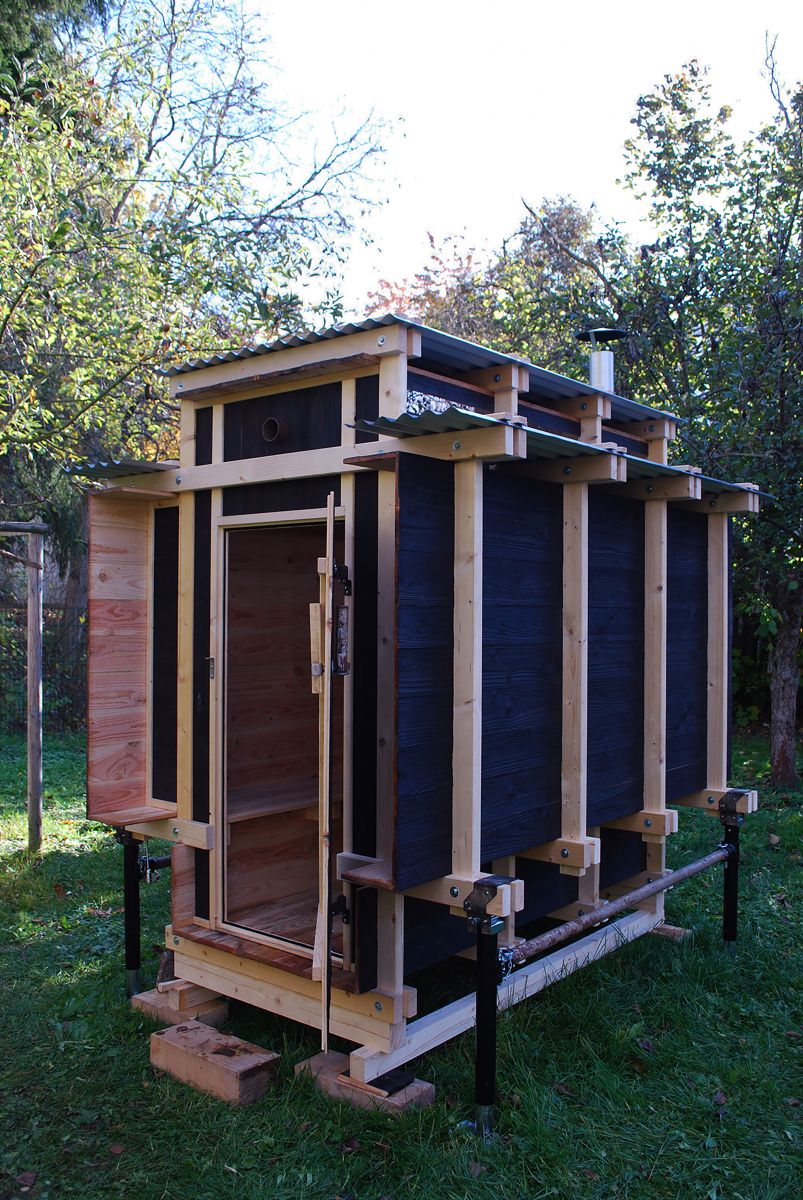 Schwitzhütte,是一個(gè)德語(yǔ)詞,是桑拿房的意思。設(shè)計(jì)者將其作為一個(gè)景觀裝置以創(chuàng)造空間的方式表達(dá)出來(lái),外部采用純木材,內(nèi)部設(shè)置符合人體尺寸。這座小型建筑還解決了空間問(wèn)題,可以將其看為游牧建筑,展現(xiàn)了原始小屋的風(fēng)貌。桑拿小屋可安裝在小型汽車(chē)拖車(chē)上,可以隨車(chē)長(zhǎng)途跋涉。到達(dá)目的地后,它可以從掛車(chē)上脫開(kāi)并使用可連接的旋轉(zhuǎn)支腿降低高度。 這樣,可以對(duì)裝置進(jìn)行固定,調(diào)整并使其適應(yīng)各自的地形,并達(dá)到舒適的入口高度。