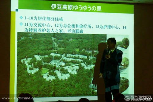 村山先生首先闡述日本老年設施建立的背景和發展情況,并以三個已經運營多年的老年社區為例闡述“悠游之鄉”的開發過程和影響,然后翻譯吳曉穎介紹老年社區在中國大連的嘗試。最后村山先生大體分析了老人設施策劃運營的特點、財務分析模擬計算方法。