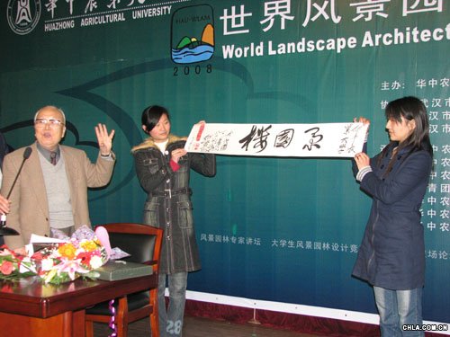 春雨喜人,潤物無聲,華中農業大學與武漢市園林局共同舉辦的華中農業大學首屆風景園林月活動隆重開幕。活動啟動儀式在我校景園樓扇形教室隆重舉行。儀式中邀請了中國風景園林專業奠基人之一,著名的學者、造園大師、教育家、園藝學家、植物生態學家、建筑師和大地規劃師,北京林業大學的孫筱祥教授為華農學子作了題為《地球表層空間宏觀控規與學科行業的任務》的專題報告。 上午9點,孫先生在全場500多名學生和學院教師的熱烈掌聲中健步走入布置一新的會場。啟動儀式由校團委書記王從嚴主持,在介紹了到場的來賓,宣讀了中國風景園林協會為本次活動發來的賀電后,由園藝林學學院院長、包滿珠教授致詞,他簡要介紹了風景園林在中國的發展歷史和現狀、具體闡述了本次華中農業大學世界風景園林月的主題和活動安排。之后,副校長高翅教授作為本次活動的組委會主席之一發表了熱情洋溢的講話,他向所有的到場來賓和同學表示誠摯感謝,當他動情地吟出“梧桐春雨瀟瀟落,只為園林奠基人”的詩句時,臺下爆發出熱烈的掌聲。他還號召鼓勵同學們積極參與本次活動,為宣傳風景園林學科、促進我校園林、風景園林專業的良好發展做出自己的貢獻。 在由武漢市園林局局長左紹斌宣布本次世界風景園林月活動正式啟動后,我校園林學科創始人魯滌非教授親自點擊開通了活動主題網站和“獅山園林”論壇。隨后,八十多歲高齡的孫先生親自和到場嘉賓、師生代表一起冒著霏霏細雨參加了“同植紀念樹”活動,共同在景園樓前植下一株健壯的白玉蘭。“十年樹木,百年樹人”,伴隨著專家、來賓、師生們的真心祝愿,相信這棵希望之樹定會如我校園林、風景園林學科一樣茁壯成長,枝繁葉茂。 上午10時,在同學們的殷切期盼中,終于迎來了本次開幕儀式的壓軸戲——孫筱祥教授的專題演講。“I’m the first teacher of landscape architecture in china, and now I am a old student of landscape architecture as you are.”孫教授以一句地道地英文自我介紹作為開場白,博學多識,精益求精,終身勤勉的孫教授,到如今仍然將自己說成一位在知識海洋里不斷前行的學生,不禁讓所有在場師生為之肅然起敬,場上場下的距離瞬間拉近。 在演講中這位耄耋老者以自己幾十年來在風景園林學科中的學習、實踐和教學經驗為基礎,為臺下師生生動闡述了風景園林學科的真正內涵、性質和怎樣成為一名合格的風景園林設計師。他雄厚的專業知識背景和廣博的見識,他具有世界范圍和時代精神的敏銳眼光,他精辟的論斷和邏輯的分析,與他的幽默機智、平易近人一起給在場的每一位聽眾留下了深刻的印象。 孫先生早年雖然家境貧寒,但他立志高遠,勤奮刻苦,以優異成績進入當時的著名高等學府,學習植物相關課程,并師從徐悲鴻大師的弟子孫多慈教授學習美術,是孫多慈老師的得意門生,后又曾師從著名建筑學家劉敦楨、楊延寶、童雋等人。早年的刻苦學習和多位名師的尊尊教導,為孫先生日后成為被國際學術界認同的首位中國風景園林工作者,為他在中國風景園林實踐和教育事業中的卓越貢獻打下了良好的基礎。在先生的報告中,對自己取得的輝煌成就只是一帶而過,更多的時間則是在為廣大師生講解他對學科的認識和學科發展方向的論斷。 孫先生的報告共分三部分。首先,孫先生為大家呈現了當今世界面臨的重要危機,它們包括不斷增長的龐大人口,籠罩在人類頭頂的戰爭陰云和由于生態系統被毀壞而在全球范圍內頻繁發生的各種自然災害。他用觸目驚心的圖片和嚴肅的話語為聽眾呈現出地球環境惡化的現實,引人深思,也為他在第二部分詳細闡釋他對Landscape architecture這一長期存在爭論的學科名稱及內涵埋下了伏筆。 孫先生將Landscape architecture翻譯為“風景園林與大地規劃設計學”,并將1948年在英國劍橋成立了國際大地規劃與風景園林聯合會章程中對于Landscape Architecture的相關闡述翻譯成準確的中文:“鑒于世界各國人民的長遠健康、幸福和歡快,應建立在人們與他們的生存環境和諧共處,和明智地利用資源的基礎上。由于那些增長的人口,加之不斷發展的科學技術,導致了人民在社會上、在經濟上、在物質上,對資源不斷增長的需要,導致環境惡化和浪費。我們就需要有一個學科,有一種知識,與自然聯系的專門知識。這些專門的合格的知識、技能和經驗,我們已經有了,就是Landscape Architecture”。先生基于對本學科的長期研究和了解,基于對未來發展的關注和展望為風景園林內涵做出的解釋,有力地批駁了某些學者的偏頗理解,為廣大風景園林專業的學子指明了一條正確的道路。 風景園林在中國有著悠久的歷史,留下了許多寶貴的經驗和物質、文化遺產。孫先生在第三部分的講話中,著重對新時期的風景園林專業教育和人才培養模式,學生在專業上的學習方法等作了詳細的闡釋。對于每一個想要在風景園林事業上有所成就的人來說,他首先要是一個詩人、畫家、還應該是一個植物學家、園藝學家、地質地理學家和建筑家。他應該了解社會的發展方向、經濟狀況和人民的精神文化需求,應該與時俱進地不斷學習各方面的知識。他強調,作為一名有責任的設計師,一定是“為民服務”,即為廣大普通群眾服務,而不是為少數特權階級和利益集團所驅使,喪失做人的起碼良心,做出不利于整個社