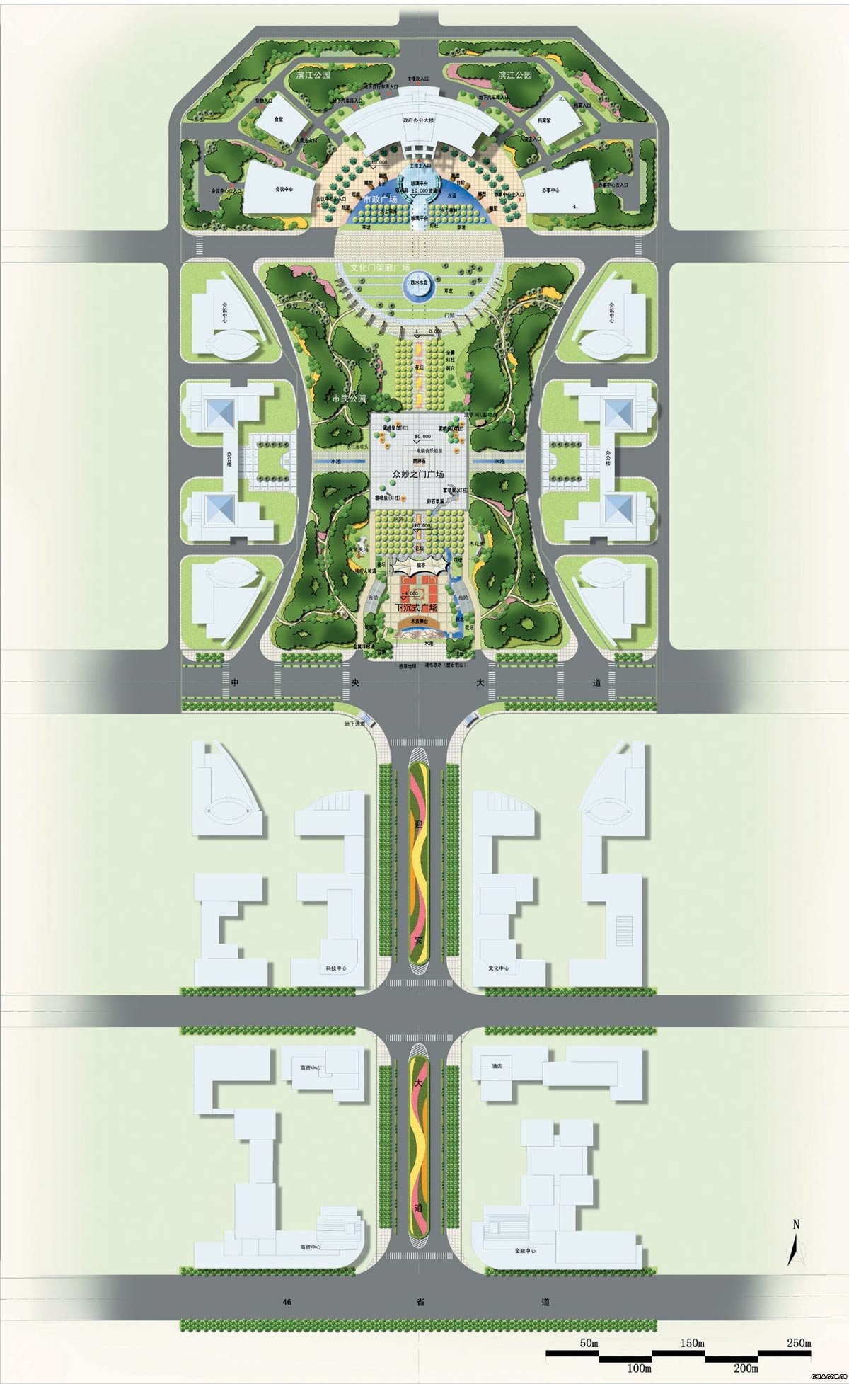 作品名稱: 衢江區中心公園 作品設計單位: 上,F代建筑裝飾環境設計研究院有限公司 作品地點: 浙江省衢州市 總體設計說明:衢江區中心公園位于衢江新區中心,地勢平坦,包括市政廣場、市民廣場、濱江公園、中央大道、景觀大道等。 整體設計以創造城市森林為目標,突出人與自然的和諧共處。園林設計手法以傳統、自然、現代感相結合,多元化與個性特色相統一為特色,探索海派園林風格,依地形在人工建筑林立的環境中創造出城市山林意趣。各景區主題、功能、形態特點各異,既有區別又有聯系,形成起承轉合、重點突出的軸線風景序列。綠化設計利用植物寓意聯想來創美的意境,采用人工規整的陣列式、體塊式種植渲染出宏大的氣勢,烘托出景觀的軸線感;以自然的片林、叢林、優美的孤樹創造出具有自然生態之美的環境景觀。小品、景觀建筑星羅棋布,散落于大片綠色之間。各種形態的燈或行或列,勾勒出一個五彩斑斕的夜世界。 市民公園鳥瞰效果圖 文章整理:中國風景園林網。http://www.m.school2008.cn。 中國風景園林網獨家稿件聲明:該作品(文字、圖片、圖表、音頻、視頻)特供中國風景園林網使用,未經授權,任何媒體和個人不得全部或部分轉載。