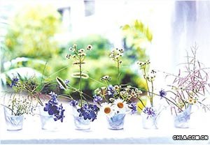 2、野趣式:以自然野花、野草為原料,打破傳統的插花手法,也可以利用生活中的杯、碗、盆等工具裝花,可以使房間變得自由、清麗、脫俗、富有生氣,也可以增添家庭的和協氣氛。
