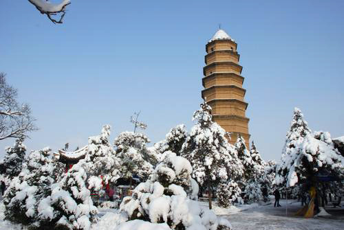 古稱嘉嶺山,位于延安城東南,延河之濱。在山上可鳥瞰延安整個城區。因山上有塔,通常稱作寶塔山。寶塔山是革命圣地延安的重要標志和象征。1953年版第二套人民幣二元券正面圖案為“延安寶塔山”。中華人民共和國1955年頒授的獨立自由勛章,核心圖案就是寶塔山和紅五星。國家郵電局發行的紀念郵票中也屢屢出現寶塔山。“幾回回夢里回延安,雙手摟定寶塔山”,著名文學家賀敬之的名句熱情的謳歌了寶塔山在中國人民心目中的神圣地位。寶塔山高1135.5米,山上寶塔,始建于唐,現為明代建筑。平面八角形,九層,高約44米,樓閣式磚塔,中共中央進駐延安后,這座古塔成為革命圣地的標志和象征。建國后,國務院將延安寶塔歸入第一批全國重點文物保護單位延安革命舊址之中。寶塔山上,歷史文物和現代革命文物星羅棋布,交相輝映,滿山綠樹成蔭,花草爭艷。延安旅游集團公司成立后,又投入大量資金,在山下修仿古式山門、上山踏步道,整修了摘星樓、烽火臺、新添置了巨型大鐘一座,巨型大鼓一尊。喻名“平安鐘”、“太平鼓”,游人擊之金聲玉振,山鳴谷應,“一擊則身體健康,喜氣滿庭;二擊則風調雨順,物阜民豐;三擊則國泰民安、普天同慶”。山上還修建了休閑觀光設施和風味小吃,游人在游覽之余還可。裝飾了大量的泛光和霓虹燈具,一到夜間,寶塔、摘星樓、烽火臺、上山道滿山綠樹相映在各色燈影中,恍若仙境,映照得山城延安更加秀美壯麗。寶塔山是延安最重要的游覽區之一,中外賓客無不登山憑眺,縱觀圣地全貌。眾口一詞:“只有登上寶塔山,才算真正到了延安”。