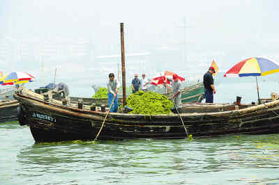 青島明確表示:7月15日之前要將奧帆賽場地內的50平方公里海域內滸苔打撈干凈!