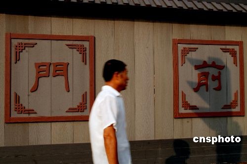 7月20日,一名市民從古風古韻的前門大街圍墻前走過。據工作人員介紹,從明正統年間至今,已經有570年歷史的前門大街第五次大規模更新日前已修繕完畢,有望8月1日正式對社會開放。
