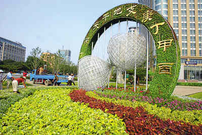 以天干地支紀年法為主題的奧運花壇,出現在東單路口