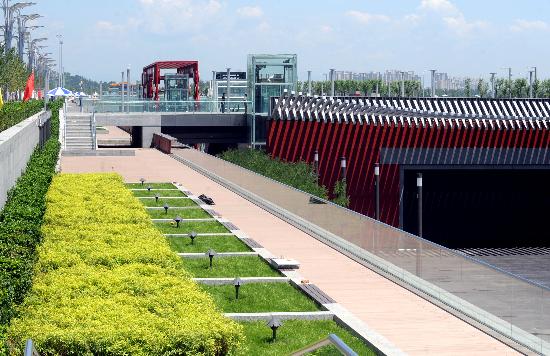 奧林匹克森林公園中心區(qū)下沉式廣場(chǎng)的南門(7月6日攝)。在奧林匹克森林公園中心區(qū),有一處經(jīng)過(guò)精心打造的下沉式廣場(chǎng)。這個(gè)被稱為“地下宮殿”“中華傳統(tǒng)藝術(shù)長(zhǎng)廊”的下沉式廣場(chǎng),距地面12至17米,由南向北依次排列著7個(gè)“院落”——御路宮門,古木花亭,中國(guó)鼓墻,荊楚編鐘,青磚灰瓦的四合院,氣勢(shì)恢弘的紫禁城紅墻……這些極富中國(guó)特色的景觀,將給各國(guó)運(yùn)動(dòng)員和游客獻(xiàn)上一場(chǎng)濃縮了中華民族幾千年經(jīng)典文化的“視覺(jué)盛宴”。新華社記者王頌攝