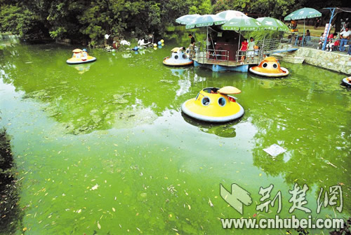 2008年8月30日,從武漢中山公園柳浪橋走過的游人發現,橋下的湖水都變成了污染嚴重的濃綠色。湖邊的飛碟船游樂園工作人員介紹,3個多月以來,他們看著湖水水質一天天變差,多次向園方反映過,但未見好轉。園方一負責人稱,該湖不是死水湖,因藍藻入侵才變綠,目前他們正在采取凈化措施。