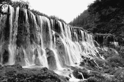 圖為水量充沛的九寨溝諾日朗瀑布。