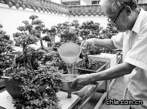 余老先生正在給盆景澆營養液 如今市場上的花卉品種越來越多,花卉也越來越漂亮,這些都得歸功于福州花農養花種花用了新科技。 “無土栽培并不是什么新鮮事,現在很多花卉、蔬菜都是無土栽培的,但這種技術以前從未用在盆景上,這是因為人工無土栽培技術風險比土壤栽培大,稍有不慎,歷經幾十年栽培的盆景就可能毀于一旦。不過,我市卻是全國首個采用這種技術進行盆景種植的城市。”福州市花卉協會的盧濟炳秘書長昨日表示。 昨日記者在位于閩侯上街的余良城老先生家中看到,數十盆造型奇特、別具匠心的盆景格外引人注目,但記者仔細一看發現,這些盆景的盆里并不是泥土,而是一粒粒細小的陶瓷顆粒,有的盆景底部還擺放著塑料水箱。據余老先生介紹,這是他經過十幾年摸索和研究,采用無土栽培技術種植出來的一小部分盆景,其余幾百盆都在羅源的種植基地上。這些花卉盆景主要靠陶粒(陶瓷小顆粒,起保護和固定功能)和特制營養液來生長。 余良城表示,很多人都認為盆景不能用無土栽培,但他十幾年來已無土種植了幾百盆盆景,涉及金邊翠榕、細葉榕等十幾個樹種和花卉,種植效果非常好,這說明盆景也是可以通過無土栽培的,關鍵是對技術的把握。 據介紹,跟傳統種植技術相比,盆景無土栽培有很多優點:一是環保無污染,不會泥水到處流,也不會有病蟲寄生在泥土中;二是護理方便,無土盆景1個月添加1次營養液就可以了;三是出口更方便,比如外商想買福州盆景回國,不必再怕盆景的土壤影響通關。 盧秘書長表示,其實盆景無土栽培僅僅是我市花卉業科技種花養花的一個縮影,隨著新技術在花卉種植業的進一步推廣,市民不但有機會買到更多漂亮的花卉,而且家庭日常養花也變得越來越輕松。比如花農正在使用的組織培養技術就取得了很大的成效。以福州蘭花為例,用傳統種植技術,一株母苗1年只能培育出兩三株子苗,而用組織培養技術,一株母苗可培育出幾千、幾萬甚至幾十萬株子苗,而且花朵更多、更大。這是近幾年福州市場上蘭花大降價的主要原因。事實上,該技術可以用在很多花卉的種植上。
