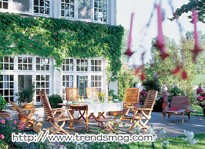 如果恰逢庭院里有小范圍的自然生態(tài)群落,應(yīng)該加以利用,要知道這可是得天獨(dú)厚,可遇不可求的條件。對(duì)應(yīng)這樣的先天美意,推薦選擇一些玉簪屬的植物,將它打造成自然生態(tài)園。這個(gè)科的常見(jiàn)植物有菟葵、牡丹、郁金香。此外,還可以種植一些鼠尾草、各種雛菊、飛燕草等耐寒植物。當(dāng)然,玫瑰也是一定要種植一些的。這種開(kāi)花灌木,可以成為庭院里絕妙的美麗籬笆。 配置為主唱 在眾多的庭院配置中,休閑桌椅對(duì)庭院起著畫(huà)龍點(diǎn)睛的作用。如何正確選擇它們對(duì)一個(gè)庭院建設(shè)成功與否是非常關(guān)鍵的。首先,如果可能的話,盡量選擇與庭院裝修相同材質(zhì)的家具,因?yàn)橄嗤馁|(zhì)搭配出的表情最和諧不過(guò)。此外,款式與色彩也最好與裝修風(fēng)格一致,這樣才不至于產(chǎn)生不協(xié)調(diào)的觀感。挑選時(shí)有一個(gè)竅門(mén)可以嘗試一下,木質(zhì)的庭院家具一般不會(huì)與整體效果有太大的沖突。 ![]() 和諧色彩關(guān)系