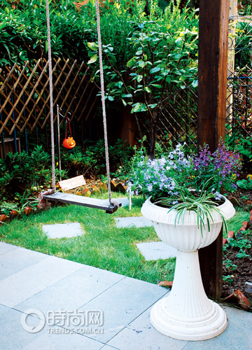 在這個(gè)花園里,很多種植的花草也是充分考慮到孩子們的成長(zhǎng)。蔬果是最好的選擇,孩子們對(duì)自然充滿著好奇,能親自播下一顆種子,發(fā)芽的不僅僅是小苗,還有自然的力量和生命的神奇在孩子們心中開(kāi)始萌芽。 ![]() 只要能夠保證結(jié)實(shí)安全,自己也可以DIY一個(gè)。只需要兩根結(jié)實(shí)的麻繩和一塊木板而已。 從春天到秋天,甚至冬天,總會(huì)有適宜種植的瓜果蔬菜,四季中都有孩子們的樂(lè)趣所在。Margaret就在花園里為孩子們種了果樹(shù):梨樹(shù)、葡萄,還有玉米和草莓;每年的春天,潔白的梨花最先綻放在花園,搖曳著幸福的芬芳,孩子們于是歡呼雀躍,每一朵花在她們天真的眼眸中就是一顆鮮美多汁的蜜梨;葡萄夏日開(kāi)著小小的花序,到每年的秋天果實(shí)一串一串,孩子們的口水也是一串一串。一朵花是怎么變成一顆水果的呢?怎么才能想通這一點(diǎn)呢?