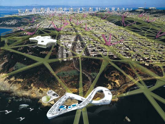 這個設計視覺上驚人的震撼力,而且它令人深思的設計思想,最近贏取了未來城市設計比賽。 它結合最創新的綠色技術以舊金山的獨特的氣候和地質情況規劃的一個全方位的都市系統。