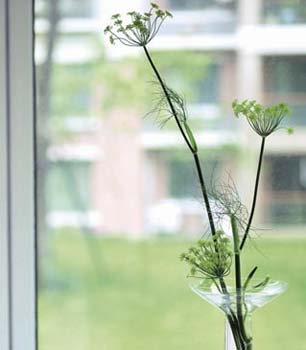 用花裝點家,不需要濃烈的顏色,純粹、淡雅的白、粉、綠就可以,復雜的插花技藝,層層疊疊的插花手法會打亂恬淡的心情,簡單素雅的插花才適合這個季節的窗邊風景。