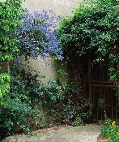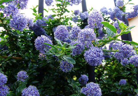 攀援的獼猴桃,藍(lán)色花簇的美洲茶 英文名叫加州丁香,學(xué)名美洲茶