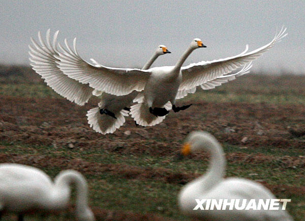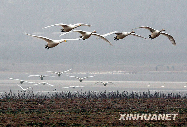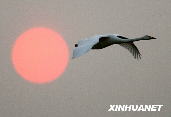 ![]() 1月4日,一群白天鵝在山西平陸黃河濕地上空飛翔。 平陸黃河濕地是我國白天鵝越冬棲息地之一,當(dāng)?shù)亟ㄆ鸢滋禊Z保護站,指定專人巡護并定點、定時投食,保護遷徙至平陸濕地的白天鵝安全過冬,成群結(jié)隊的白天鵝成為平陸黃河濕地壯觀獨特的景觀。 新華社發(fā)(薛俊 攝)