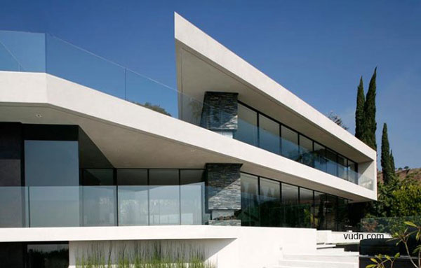 別墅位于美國加利福尼亞州的好萊塢山,設(shè)計來自于XTEN。別墅建設(shè)到好萊塢這樣一個銷售狹窄和房地產(chǎn)急劇下降的地方,是一個具有挑戰(zhàn)性的方案,因為要在好萊塢建立別墅,首先具備的條件就是要融入周圍的景觀以及這個開放的城市。護欄的配置延長一樓第一個層次的生活區(qū)域,并在第二個層次上創(chuàng)造山坡和花園。正面,側(cè)面和后方則利用滑行開放門抹掉所有室內(nèi)外之間的界線,并進行花園兩個層次的空間連接。