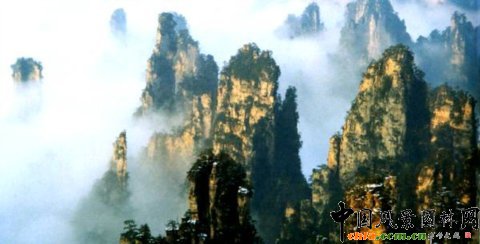 該區域布滿3000多座細長的砂巖石峰石柱,許多都高200多米。