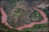 右圖:迪慶德欽縣奔子欄鄉境內平靜舒緩的金沙江拐彎處