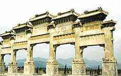 清東陵是我國最后一代王朝——清王朝帝王的主要陵寢之一,(除此尚有東北的永陵、福陵、昭陵,和河北易縣西陵,規模都不及東陵大,清朝統治者驅使了我國數以千百萬計的勞動人民以二百四十多年的時間在這里修筑了一百一十三萬平方米的建筑面積,由二百一七座主要單體建筑組成了大小十五所陵園。這比我國最大的古建筑群——北京故宮還大十萬平方米。在這一群古代建筑物的下面,埋葬著清代順治、康熙、乾隆、咸豐、同治等五個皇帝,慈禧等十四名皇后和百余名妃嬪。