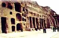 縱觀群佛,在這綿延一公里的石雕群中,雕像大至十幾米,小至幾公分的石雕,巨石橫亙,石雕滿目,蔚為大觀。他們的形態(tài),神彩動(dòng)人。有的居中正坐,栩栩如生,或擊鼓或敲鐘,或手捧短笛或載歌載舞,或懷抱琵琶,面向游人。這些佛像,飛天,供養(yǎng)人面目、身上、衣紋上,都留有古代勞動(dòng)人民的智慧與艱辛。這些佛像與樂伎刻像,還明顯地流露著波斯色彩。這是我國古代人民與其它國家友好往來的歷史見證。云岡石窟,是在我國傳統(tǒng)雕刻藝術(shù)的基礎(chǔ)上,吸取和融合印度犍陀羅藝術(shù)及波斯藝術(shù)的精華所進(jìn)行的創(chuàng)造性勞動(dòng)的結(jié)晶。