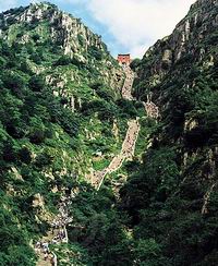 秋天,是泰山色彩最豐富的季節。遠遠望去,層林盡染:黃櫨、五角楓、花楸葉紅似火;銀杏、紫椴葉黃如金;松柏不凋,依然青翠;櫟樹、水榆、槭樹盡管色彩不那么鮮艷,卻也給泰山的秋色增加了層次;衛矛在松柏的襯托下,萬綠叢中一點紅;與衛矛相媲美的藤本爬山虎,在夏季里曾不露聲色,可到了深秋卻突然調子高昂,或紅滿一石,或紫盈一溝。造化像是大手筆的濃彩國畫,把泰山裝扮得分外妖嬈。
